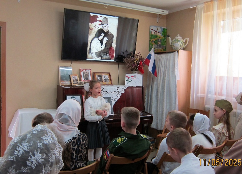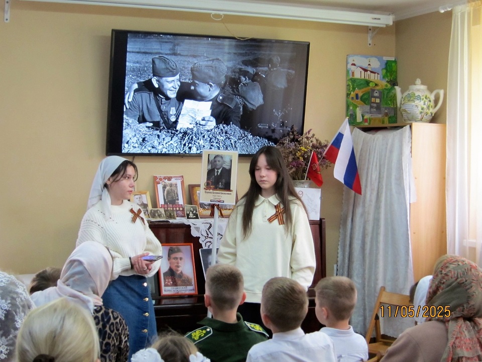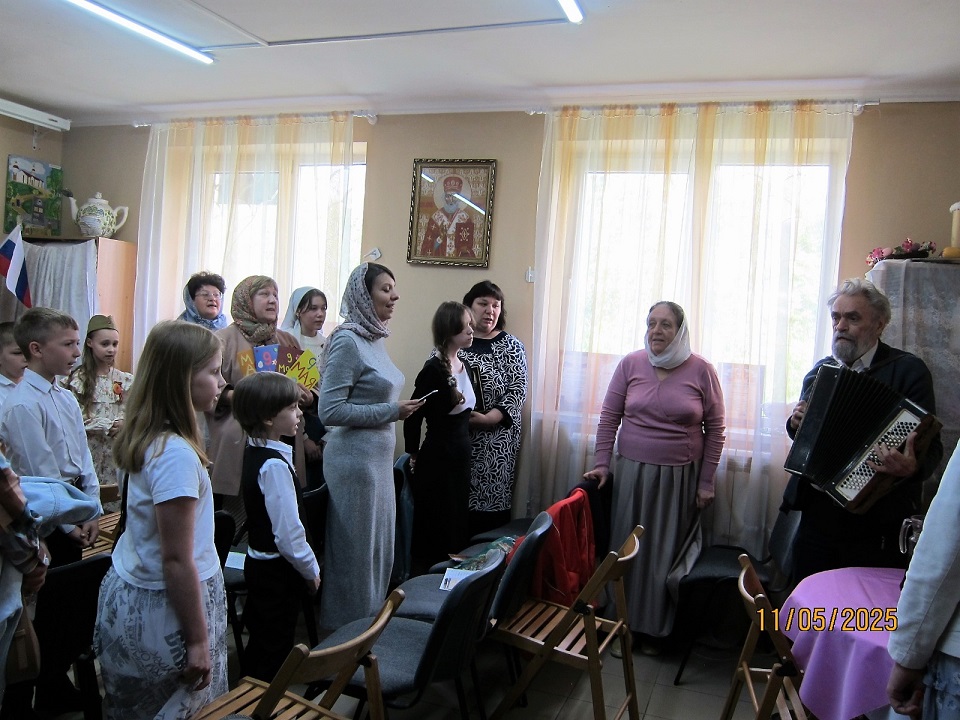 11.05.2025г. в конференц-зале храма Великомученика и Целителя Пантелеимона по благословению настоятеля митрофорного протоиерея Анатолия Комара состоялся открытый урок в воскресной школе на тему "Моя семья в Великой Отечественной войне". Урок проводила преподаватель воскресной школы Клещенкова Евгения Владимировна. На уроке присутствовали 28 участников и 2 гостя: директор воскресной школы храма Спаса Всемилостивого Азнаурьян Ирина Анатольевна и директор воскресной школы храма Введения во храм Пресвятой Богородицы Александрова Светлана Сергеевна.