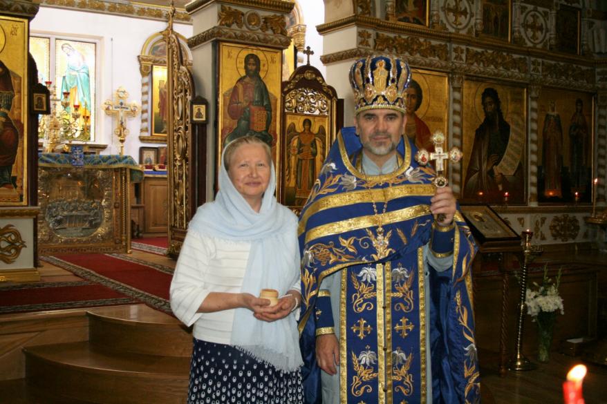Татьяна Алексеевна много лет является членом общины, несет послушания помощника настоятеля по социальной работе и свечницы. Анна воспитанница воскреной школы храма, неоднократный участник и победитель в Кирилло-Мефодиевской ученической олимпиаде по Закону Божию, занимала победные места в митрополичьем и епархиальном турах олимпиады.Отец Анатолий благословил им по служебной просфоре и произнес слова поздравления и духовного наставления. Хор пропел "Многая лета".