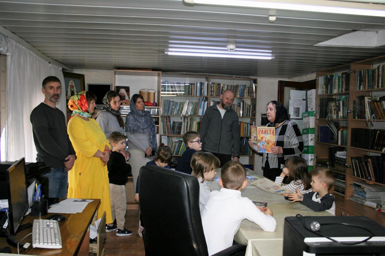22.03.2026г. в рамках празднования месячника Православной книги в храме Великомученика и Целителя Пантелеимона была проведена экскурсия по библиотеке храма, в которой приняли участие учащиеся воскресной школы, их родители и прихожане. Заведующая библиотекой и директор воскресной школы храма Журавлёва Ирина Анатольевна ознакомила их с существующими направлениями в православной литературе (Священное Писание, святоотеческая литература, житийная, художественная и др.), продемонстрировала имеющиеся в наличии раритетные и современные литературные издания.