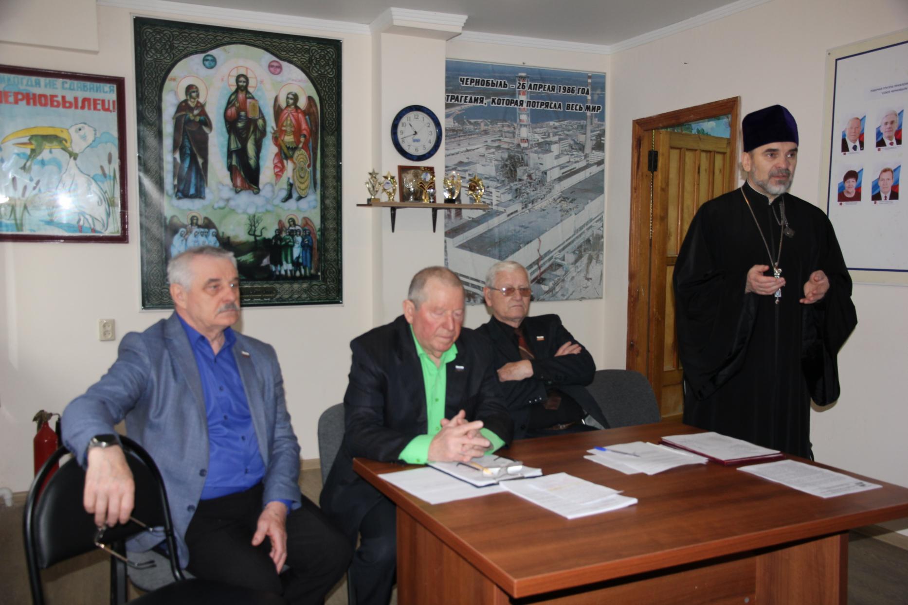 26.03.2026г. настоятель храма Вмч. и Целителя Пантелеимона митрофорный протоиерей Анатолий Комар, духовник чернобыльцев Дона, по приглашению правления областной организации инвалидов "Союз-Чернобыль" принял участие в собрании руководителей районных организаций области, посвященному подготовке предстоящих мероприятий в честь 40-й годовщины аварии на Чернобыльской АЭС.