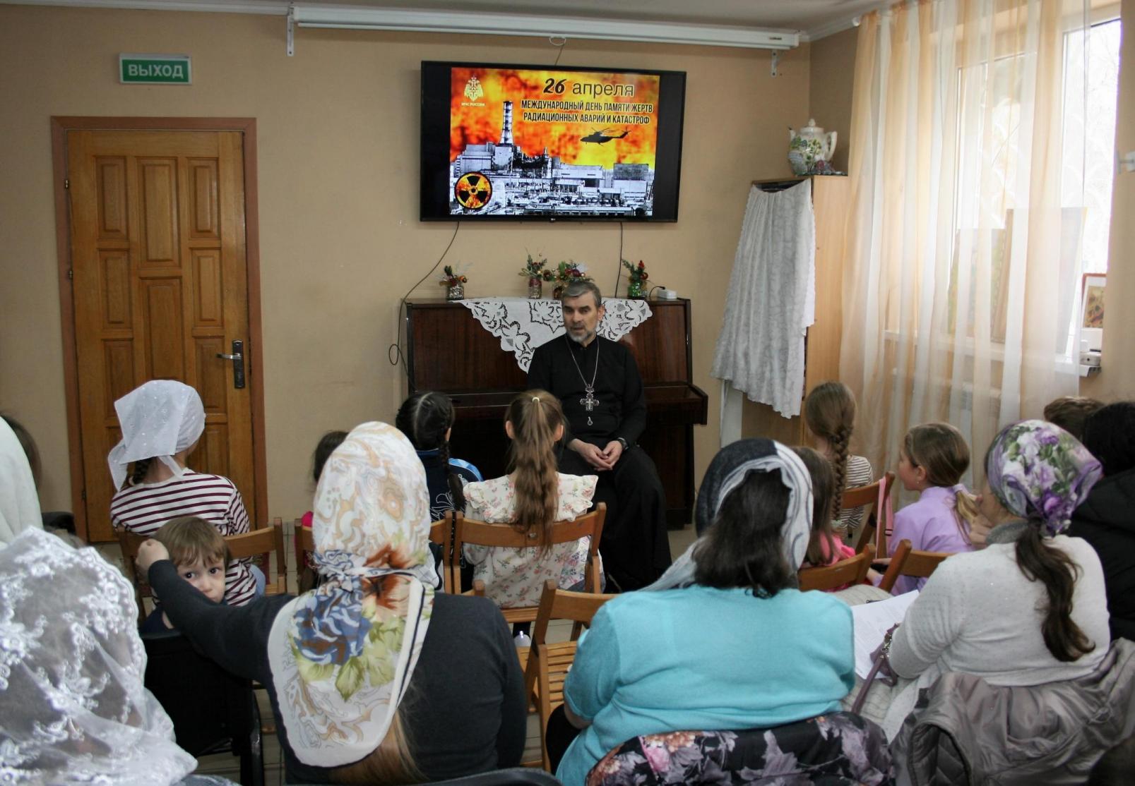 29.03.2026г. в воскресной школе храма Вмч. и Целителя Пантелеимона был проведен урок мужества, посвященный 40-летней годовщине Чернобыльской трагедии. На занятии настоятель храма протоиерей Антатолий Комар, который сам является участинком ликвидации последствий Чернобыльской аварии, рассказал о тех трагических событиях и поделился своими воспоминаниями. В своих словах отец Анатолий подчеркнул , как важно помнить и чтить подвиг ликвидаторов-чернобыльцев, спасших нашу Родину и весь мир от последствий ядерной катастрофы.